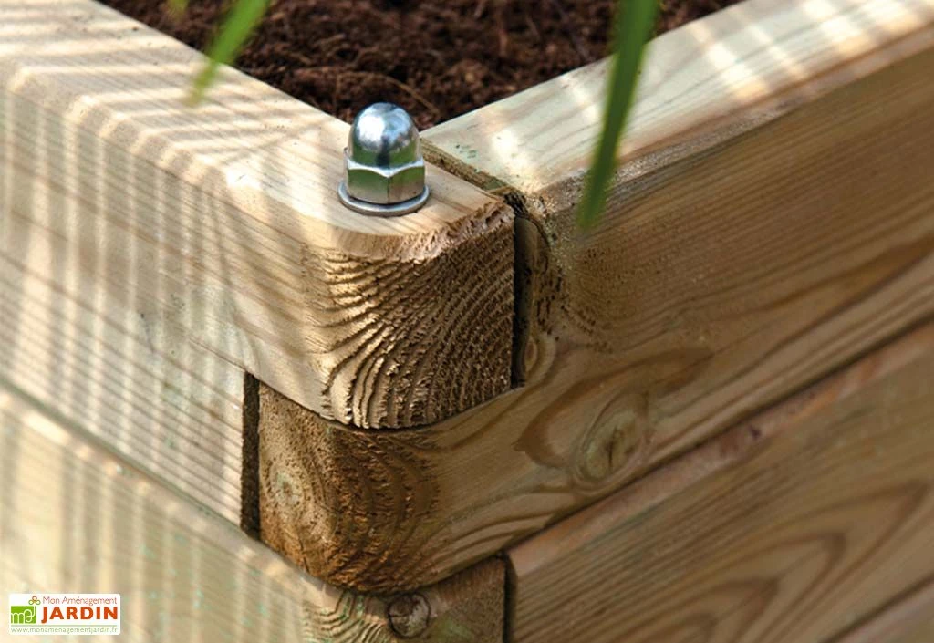 Cette jardinière en bois est livrée déjà assemblée par 4 tiges filetées. Elle est garantie 5 ans contre le pourrissement et l’attaque des insectes.