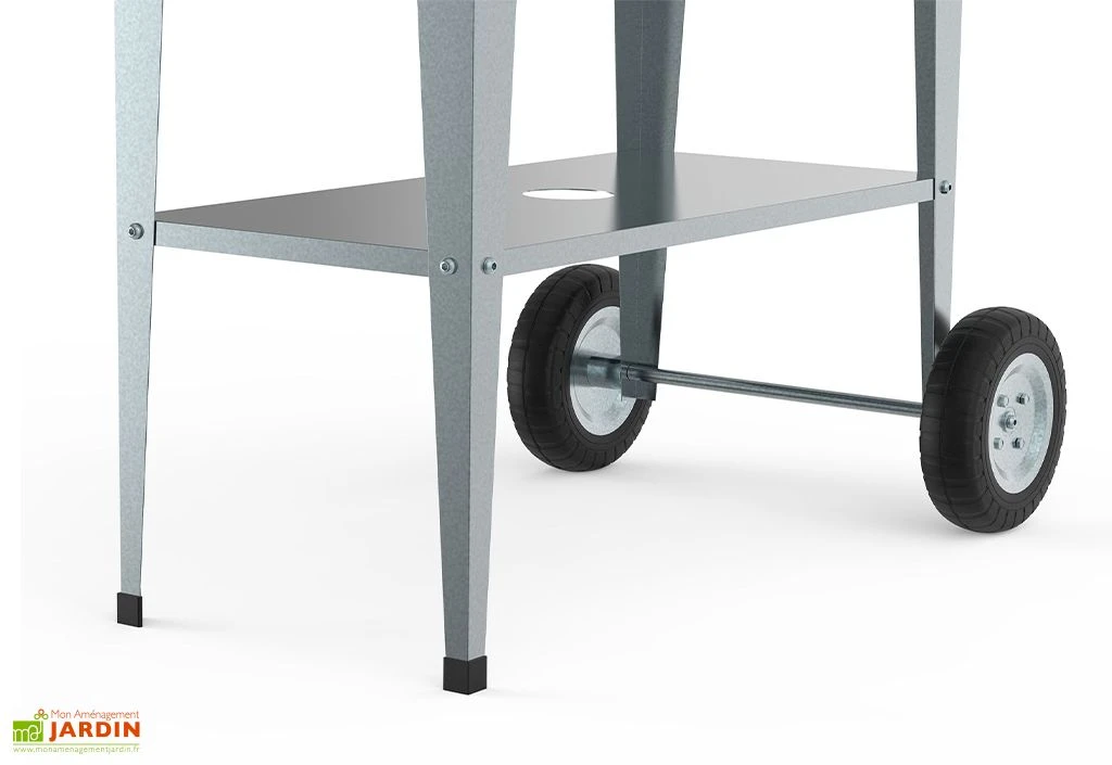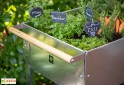 Le bac est supporté par quatre pieds, dont deux possèdent des roulettes pour un transport aisé. Vous aurez donc la possibilité de déplacer votre bac à votre guise et en fonction des zones d’ombre et de soleil. Une poignée est aussi présente pour pouvoir manœuvrer le petit potager.