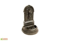 La fontaine de jardin de chez Dommartin est à adosser à un mur. Elle mesure 45 cm de profondeur, 63 cm de largeur et 100 cm de hauteur. Elle est en fonte, très résistante et protégée par un traitement anticorrosion par thermolaquage.