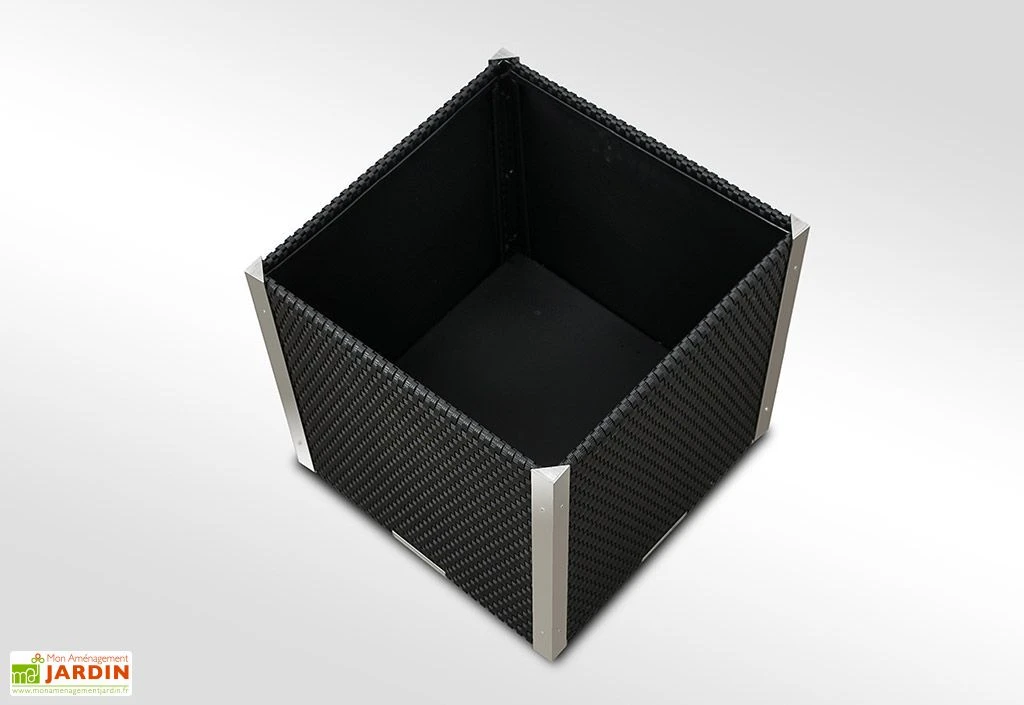 Votre jardinière de forme cubique de chez Rattan Art mesure 46 x 46 x 46 cm (l,l,h) Le bac à fleurs est en résine tressée de grande qualité qui résistera très bien aux UV et intempéries. La résine tressée mesure 2-3 mm d’épaisseur.